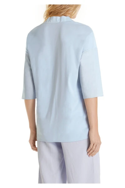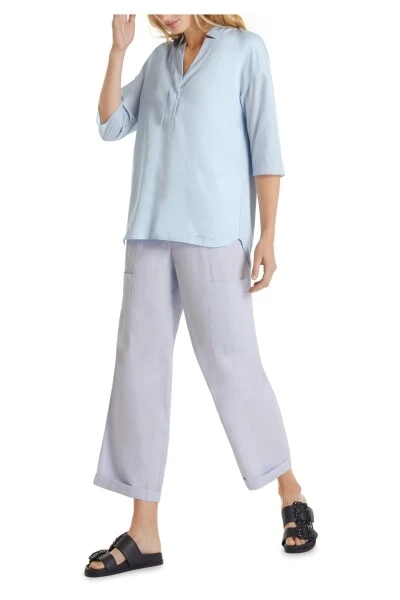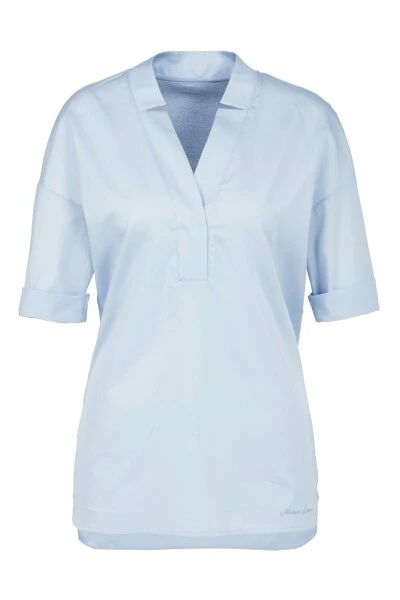 Vorstellung der Marc Cain Bluse Shirt, eine perfekte Kombination aus Stil und Komfort. Diese leger geschnittene Bluse Shirt hat einen leicht verlängerten Rücken und halblange Ärmel, die lässig hochgekrempelt sind. Der vordere Bereich und die Ärmel bestehen aus leichter Baumwollbindung, während der Rücken aus bequemem Baumwoll-Jersey gefertigt ist. Die schöne Materialmischung macht dieses Bluse Shirt zu einem Must-Have für jede modebewusste Frau.