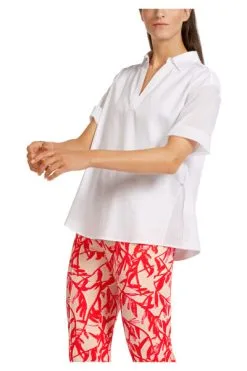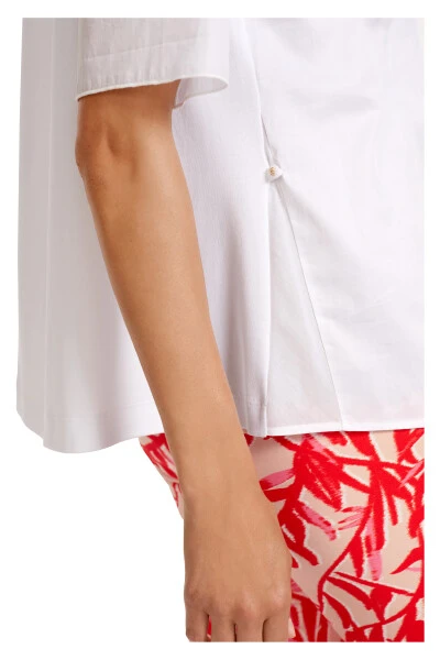 Bluse im Materialmix|Sportive Bluse im Materialmix mit Baumwolle und Elastananteil. Der Überkreuz-Polokragen verleiht dieser Bluse einen lässigen Look. Besondere Effekte bringen die hohen, mit einer Stofflage unterlegten Seitenschlitze. Für mehr Weite können sie aufgeknöpft werden. Der Rücken kommt mit Kellerfalte und unterstreicht damit die entspannte Silhouette.|Farbe: white|Entspannte Silhouette|Made in Europe|Das Model ist 179 cm groß und trägt N3/38.|Mit unterlegten Seitenschlitzen||||