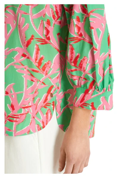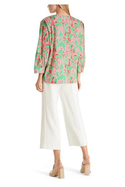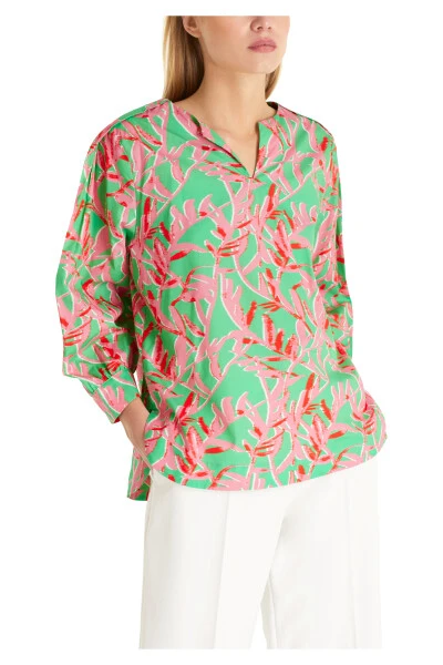 Fügen Sie Ihrer Garderobe mit dieser Marc Cain-Bluse einen Hauch von Sommer hinzu. Hergestellt aus 100% Baumwolle, hat diese gerade geschnittene Bluse ein florales Muster und abgerundete Seitenschlitze, die durch eine verlängerte Rückseite ergänzt werden. Der leichte V-Ausschnitt verleiht eine subtile Eleganz, während die Manschettenärmel das Design abrunden. Erhältlich in bright jade, wird diese Bluse in Europa hergestellt und ist in Größe3/38 erhältlich. Das Model ist 179 cm groß und trägt3/38.