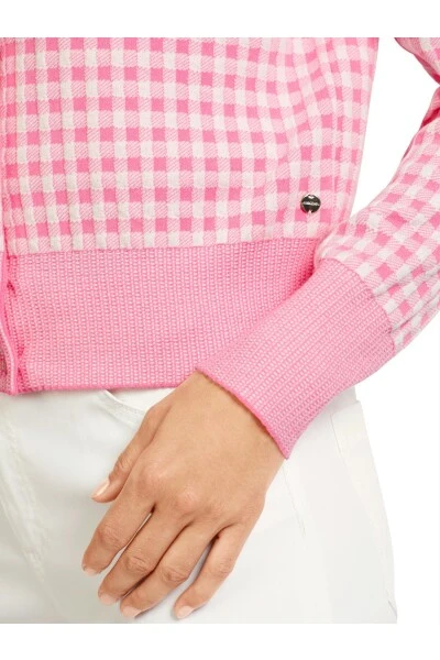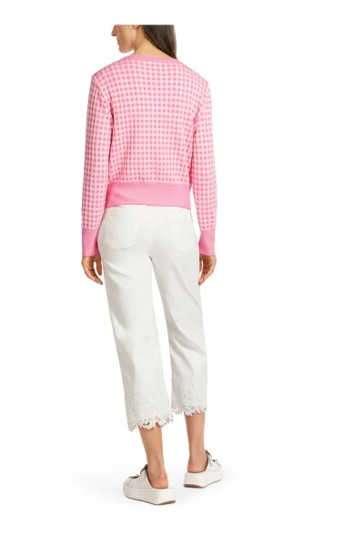 Fügen Sie Ihrer Garderobe mit diesem boxy Cardigan von Marc Cain einen verspielten Touch hinzu. Die gerippten Strickborten und großzügigen Vichy-Fenster machen ihn zu einer perfekten Sommerweste. Der Rundhalsausschnitt ist mit Details in handgesticktem Look verziert, und die Weste wird mit einem durchgehenden Knopfverschluss geschlossen. Dieses Design wird in Deutschland gestrickt und fertiggestellt.