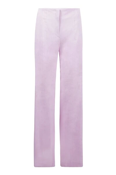 Marccain Pantalon Lila qc 81.42 w47 – 702. Lässige Hose mit breiten, rechten Beinen und hohem Taillenband. Die Hose mit hohem Bund ist aus einer elastischen Mischung aus Leinen und Viskosemischung gefertigt und hat zwei grobe Stegzacken an der Hüfte und zwei Schein-Paspelzacken an der Achselseite. Doorgestikte figuurnaden in de taille zorgen voor een perfecte pasvorm.
