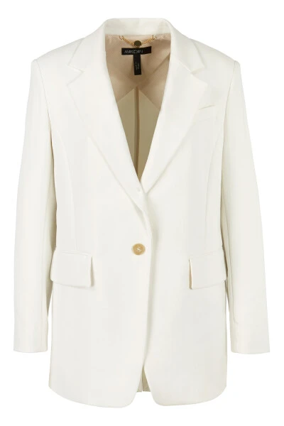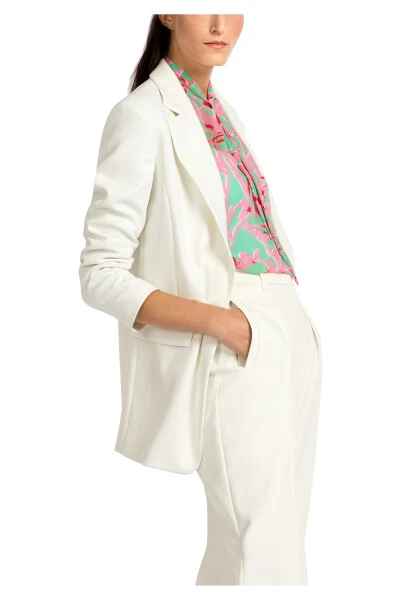 Erweitern Sie Ihre formelle Garderobe mit diesem Marc Cain Blazer. Er ist eng anliegend geschnitten und verfügt über eine Öffnung im Rücken für zusätzlichen Komfort. Das unifarbene Design wird durch ein seidiges Cupro-Futter im Rücken ergänzt, während Revers, Brusttasche und zwei Klappentaschen zum klassischen Schnitt beitragen. Der Saum ist vorne abgerundet für einen modernen Touch. Das Innenfutter besteht aus 65% Cupro und 35% Polyester.