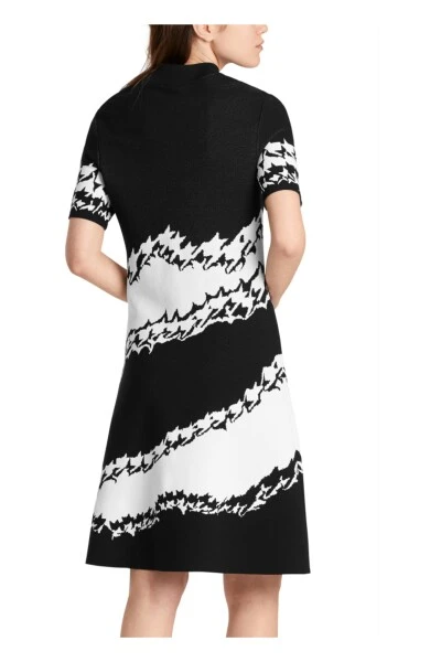 Shoppen Sie das flared Jacquard-Kleid von Marc Cain für Frauen, aus Stretch-Viskose für ultimativen Komfort. Dieses Kleid hat einen eng anliegenden Rundhalsausschnitt und ein modernes, stilisiertes grafisches Hahnentrittmuster. Kurze Ärmel runden das Bild ab. Marc Cain setzt hohe Standards für Design, Qualität, Materialien und Passform, was dieses Kleid zu einem Must-have für jede modebewusste Frau macht.