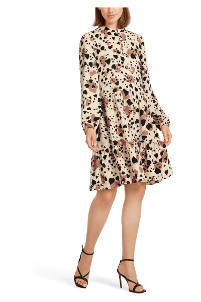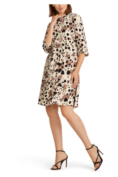 Suchen Sie nach einem Kleid, das sowohl verspielt als auch romantisch ist? Suchen Sie nicht weiter als das Leo-Kleid mit Niveauvolants von Marc Cain. Dieses cremefarbene kurze Kleid hat eine leichte A-Silhouette und elastische Arme, was es sowohl bequem als auch stilvoll macht. Das Kleid ist vorne mit niedlichen herzverzierten Knöpfen geschlossen, und das auffällige Leo-Dessin verleiht dem Look eine wilde Note. Ein kleiner Stehkragen und elastische Armgrade runden den Schnitt ab. Aus 100% Polyester gefertigt, ist dieses Kleid perfekt für jeden Anlass. Das Model ist 179 cm groß und trägt Größe 3/38.