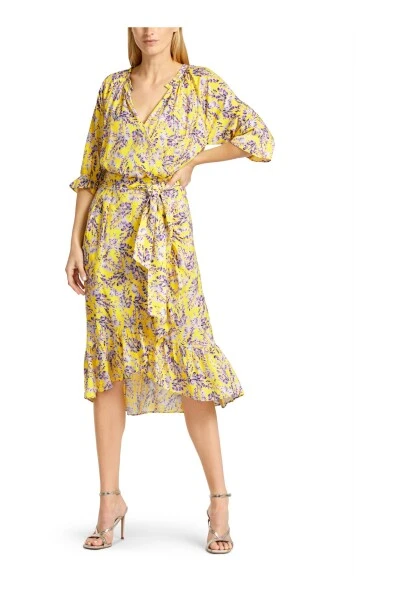Marke: Marc Cain Kategorie: Kleider > Tageskleider > Midi Kleider Geschlecht: Weiblich Beschreibung: Marc Cain bedrucktes Kleid. Dieses Kleid hat einen schwingenden Rock mit einer tulpenartigen Wickelwirkung und Rüschen am Saum. Die Taillennaht ist gerafft. Die Taille kann mit einem Schleifengürtel betont werden. Das Kleid wird seitlich mit einem Reißverschluss geschlossen. Der Ausschnitt ist mit Rüschen verziert. Die Dreiviertelärmel sind mit einem elastischen Kordelzug am Saum versehen. Stoffdetails: