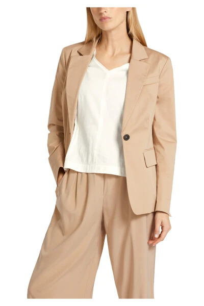 Dieser Marc Cain Blazer ist ein klassisches Stück mit einem femininen Touch. Hergestellt aus Baumwolle und vollständig mit einer Mischung aus Cupro und Polyester gefüttert, hat er Abnäher vorne und hinten für eine maßgeschneiderte Passform. Der Elastananteil und die Rückenbelüftung sorgen für Bewegungsfreiheit, während der einzelne Knopfverschluss und die geschlitzten Manschetten eineote von Raffinesse hinzufügen. In tiefem Sandton ist dieser Blazer eine vielseitige Ergänzung zu jeder Garderobe. Hergestellt in Europa. Das Model ist 179 cm groß und trägt Größe3/38.