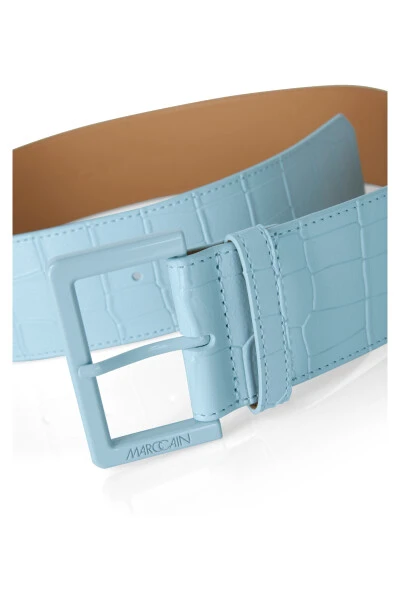 Gürtel aus Rindleder in Kroko-Optik|Klassischer Gürtel aus echtem Leder. Geschlossen wird dieser Gürtel mit einer rechteckigen Metall-Schließe, die einen dezenten MC-Schriftzug besitzt. Er ist aus edlem Leder mit einer Kroko-Prägung gefertigt. Die Enden sind harmonisch abgeschrägt. |Farbe: atmospheric blue|Abgeschrägte Enden|Mit Kroko-Prägung|Länge: 85 cm|Breite: 5,5 cm