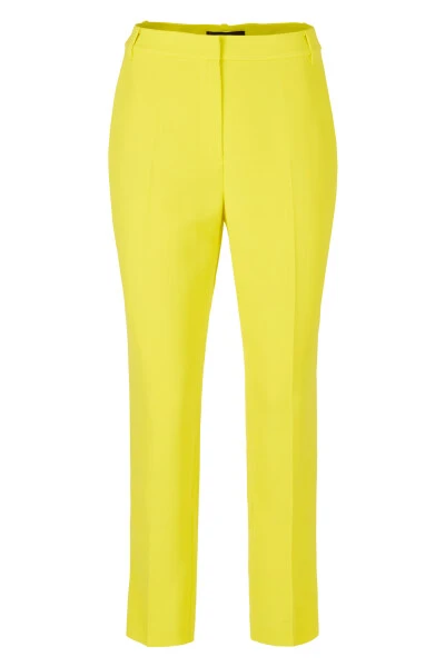 Veredeln Sie Ihre Garderobe mit diesen eleganten Cropped-Hosen von Marc Cain. Das schlichte Design und das weiche, fließende Material strahlen Raffinesse aus, während die klassische Verarbeitung und das konische Bein eine schmeichelhafte Silhouette schaffen. Die Zitronengrüne Farbe verleiht jedem Outfit einen Farbtupfer und die seitlichen Eingrifftaschen bieten praktische Nutzung. Hergestellt aus 97% Polyester und 3% Elasthan sind diese Hosen sowohl bequem als auch stilvoll. Erhältlich in N3/38 und von jemandem mit einer Größe von 179cm modelliert.