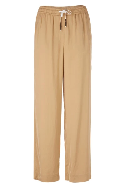 Weite Hose mit Joggingbund|Entspannte Eleganz. Die Taille ist schmal und Hüftpartie und Beine sind lässig weit. Das Viskosegewebe verleiht der Hose eine weich fließende Silhouette – und einen dezenten Glanz. Das Modell hat einen Joggingbund und vier Taschen: zwei seitliche Eingrifftaschen vorne und zwei Leistentaschen hinten.|Farbe: light clay brown|Weites Bein|Made in Europe|Das Model ist 179 cm groß und trägt3/38.|Glänzende Viskose