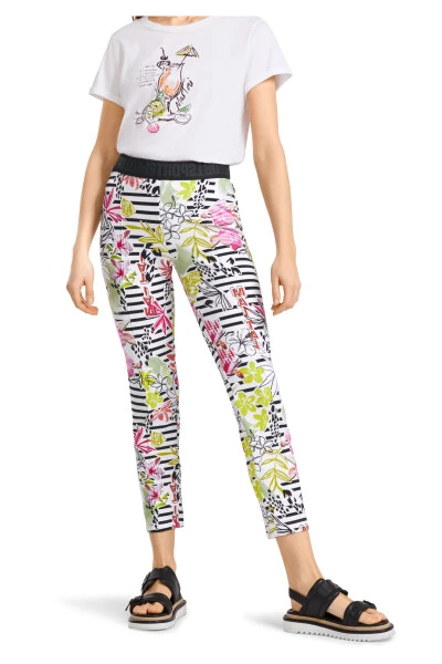 Marc Cain Bunte Pants mit elastischem Bund sind perfekt für die sportliche und modische Frau. Diese Leggings bestehen aus einer leichten Materialmischung, die dehnbar und bequem ist. Das feminine Blumenmuster verleiht ihnen eine elegante Note, während die Bügelfalten ihnen ein professionelles Aussehen verleihen. Der Ripsbund mit MC-Sports-Logo ist perfekt für einen lässigen Look. Diese Hosen sind schmal geschnitten und kommen in einer hellen Limettenfarbe. Hergestellt in Europa, bestehen sie aus 86% Polyamid und 14% Elasthan. Das Model ist 179 cm groß und trägt N3/38.