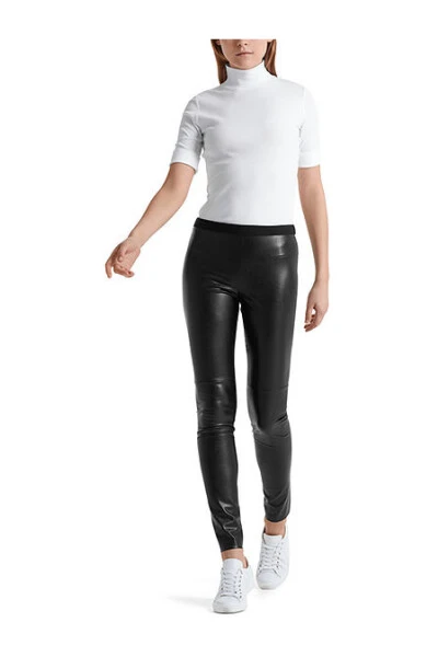 Verbessern Sie Ihre Garderobe mit diesen Marc Cain Art Leather Black Leggings. Für die moderne Frau gemacht, sind diese Leggings perfekt für jeden Anlass. Der hochwertige Stoff sorgt für eine bequeme Passform, während das elegante Design Ihrem Look eineote von Raffinesse verleiht.