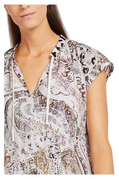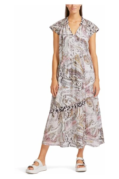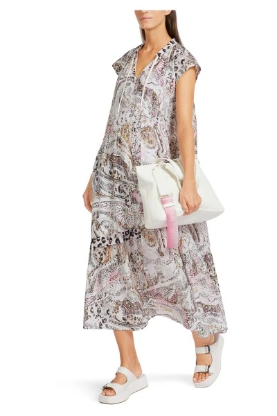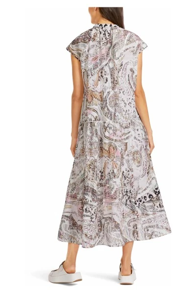 Maxikleider, Kleid mit asymmetrischen Stufen | Dieses Marc Cain Kleid besteht aus einer Baumwoll-/Seidenmischung, die ihm ein leichtes und duftendes Gefühl verleiht. Die breite, körperbetonte Silhouette ist perfekt für jede weibliche Figur und wird mit Unterwäsche getragen. Die asymmetrischen Stufen sorgen für einen einzigartigen und auffälligen Effekt, während der Stehkragen mit einer Tunnelverarbeitung vorne mit einem Kordelzug geschlossen werden kann. Die off-white Farbe und das schwingende Design machen dieses Kleid perfekt für jeden Anlass. Das Modell ist 179 cm groß und trägt N3/38. Stoffdetails: 70% Baumwolle, 30% Seide.