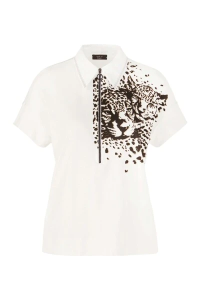 Marc Cain Polo Ecru US 53.05 J08 110 B Produktbeschreibung Dieser Polo von Marc Cain ist jetzt bei uns erhältlich. Es ist ein lässiges Poloshirt aus weicher Baumwolle mit einem kleinen Anteil von Elastane. Dieser Polo hat einen auffälligen Leopardendruck auf der Vorderseite. Es hat die Schultern und Kappenärmel reduziert. Ein spitzer Kragen und ein kleiner Seitenaufenthalt sind die Eigenschaften dieses auffälligen Designs. Produktzumensetzungsmaterial: Baumwollmischung