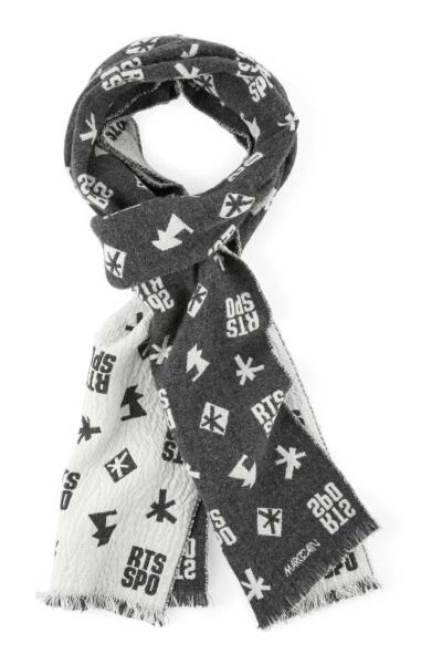 Ergänze dein Outfit mit diesem Marc Cain Schal. Der längliche Schal aus einer Wolle-Baumwollmischung besticht durch seinen einzigartigen Crash-Look, grafische Elemente und kleine Sport-Logo-Würfel. Kurze Fransen an den Seiten runden das Design ab. Perfekt für die modebewusste Frau.