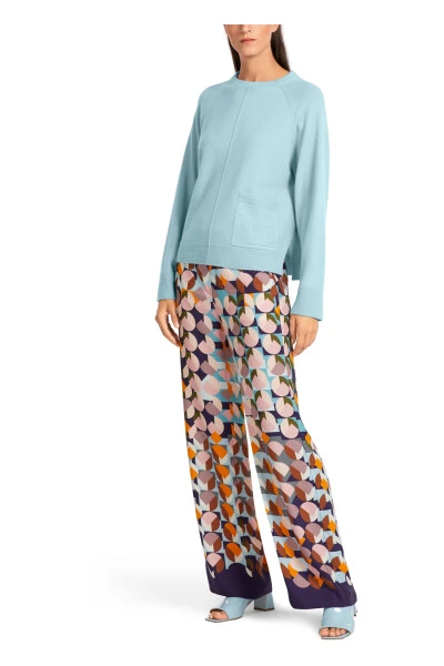 Erweitern Sie Ihre Strickkollektion mit diesem Pullover von Marc Cain Collections. Hergestellt aus einer luxuriösen Mischung aus Kaschmir und Wolle, hat dieser Rundhals-Strickpullover eine lässige Silhouette, Raglanärmel und Seitenschlitze. Die atmosphärische blaue Farbe verleiht jedem Outfit eineote von Raffinesse.