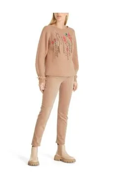 Erweitern Sie Ihre Strickkollektion mit diesem Marc Cain Rundhalspullover. Das moderne Boho-Motiv und die Paillettenapplikationen verleihen ihm einen Hauch von Glamour, während die Fransen an den Ärmelbündchen und am Rumpf ihm eine verspielte Note verleihen. Perfekt für die modebewusste Frau.