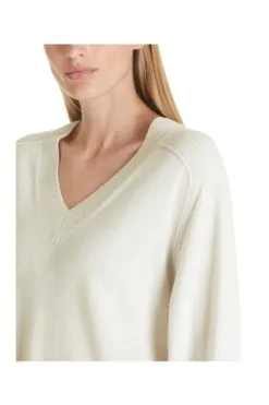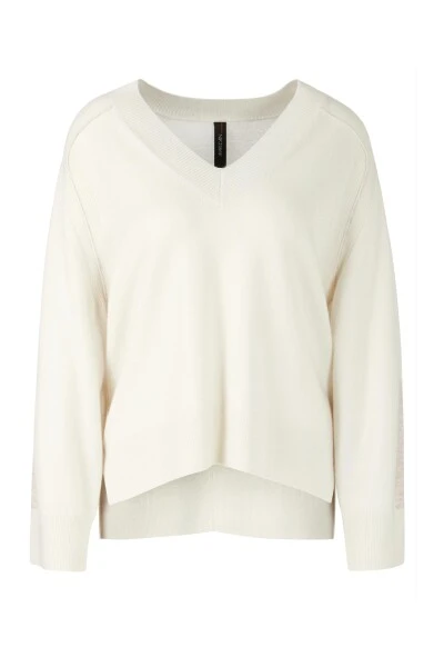 Erweitern Sie Ihre Strickkollektion mit diesem hochwertigen V-Ausschnitt Pullover von Marc Cain. Hergestellt aus einer weichen Wollmischung mit einem Hauch von Kaschmir, verfügt dieser Pullover über Schlitze an den Seiten und einen etwas längeren Rücken. Die kontrastfarbenen Patches und die auf links gedrehten Nähte verleihen ihm ein einzigartiges und stilvolles Aussehen.