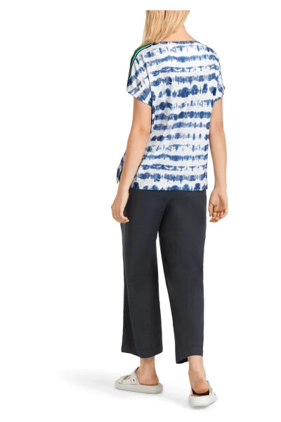 Ärmelloses T-Shirt mit Batik-Streifen|Dank Batik-Print punktet dieses T-Shirt mit einem verspielten Look. Es ist leger geschnitten und besitzt eine leichte Taillierung und kleine Seitenschlitze. Das ärmellose Design und der Rundhalsausschnitt unterstreichen die sportiveote. Und mit der Fertigung aus Baumwolle mit kleinem Elasthananteil überzeugt das T-Shirt zudem mit Tragekomfort.|Farbe: midnight blue|Legerer Schnitt|Made in Europe|Das Model ist 179 cm groß und trägt3/38.|Seitenschlitze
