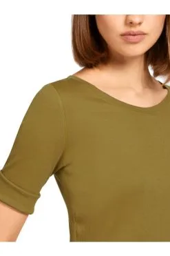Suchen Sieach einem bequemen und stilvollen T-Shirt? Suchen Sieicht weiter als Marc Cains feminines T-Shirt mit Ausschnitt. Hergestellt aus einer Baumwoll-Ripp- und Elastan-Mischung, sitzt dieses Shirt eng am Körper und ist super bequem. Der runde Ausschnitt und die Dreiviertelärmel werden durch Overlock-Nähte an den Ärmeln und am Ende betont, was dieses Shirt zu einem unverzichtbaren Basic macht.