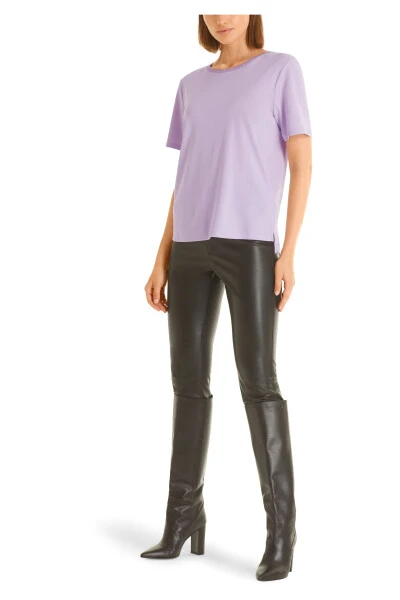Fügen Sie Ihrer Garderobe mit diesem Marc Cain T-Shirt einen Hauch von Glanz hinzu. Hergestellt aus einer angenehmen Baumwoll-Jersey-Mischung mit einem Hauch von Elastan, hat dieses locker geschnittene T-Shirt eine leicht verlängerte Rückseite und eine gerade Silhouette. Der Ausschnitt ist mit einer gestrickten Öffnung und Glitzerdetails verfeinert, während der Saumverschluss mit kleinen Schlitzen an den Seiten versehen ist. Erhältlich in Malve, wird dieses T-Shirt in Europa hergestellt und das Modell ist 179 cm groß und trägt N3/38. Stoffdetails umfassen 95% Baumwolle und 5% Elastan.