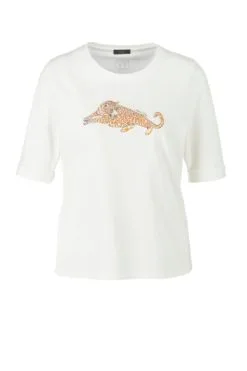 Entdecken Sie die perfekte T-Shirt-Kollektion für Frauen von Marc Cain auf unserer Online-Modeplattform. Dieses T-Shirt besteht aus weichem Stretch-Baumwolle und verfügt über ein auffälliges Leopardenmuster sowie typische Details wie einen Rundhalsausschnitt und lässig umgeschlagene Ärmel. Die entspannte Passform sorgt für einen bequemen Sitz den ganzen Tag über.
