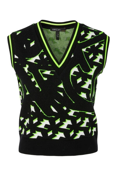 Bleiben Sie stilvoll und bequem mit diesem Marc Cain Sleeveless Knitwear. Hergestellt in Deutschland, ist dieser sportliche Pullover perfekt für jede lässige Gelegenheit. Das grafische Muster verleiht Ihrem Outfit eine Portion Spaß. Der Stoff besteht aus 76% Viskose, 20% Polyester und 4% Elasthan, was für eine bequeme Dehnung sorgt.